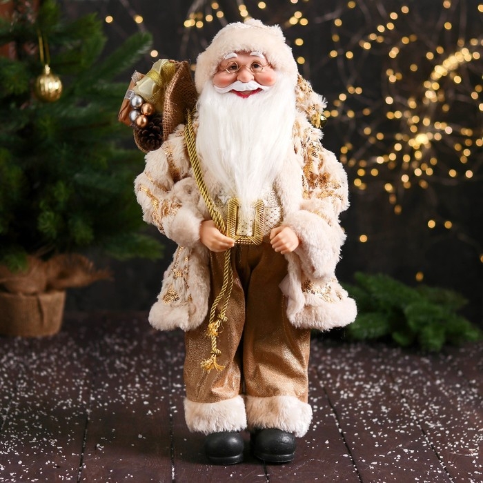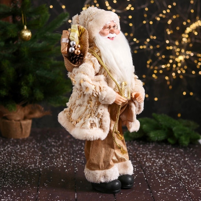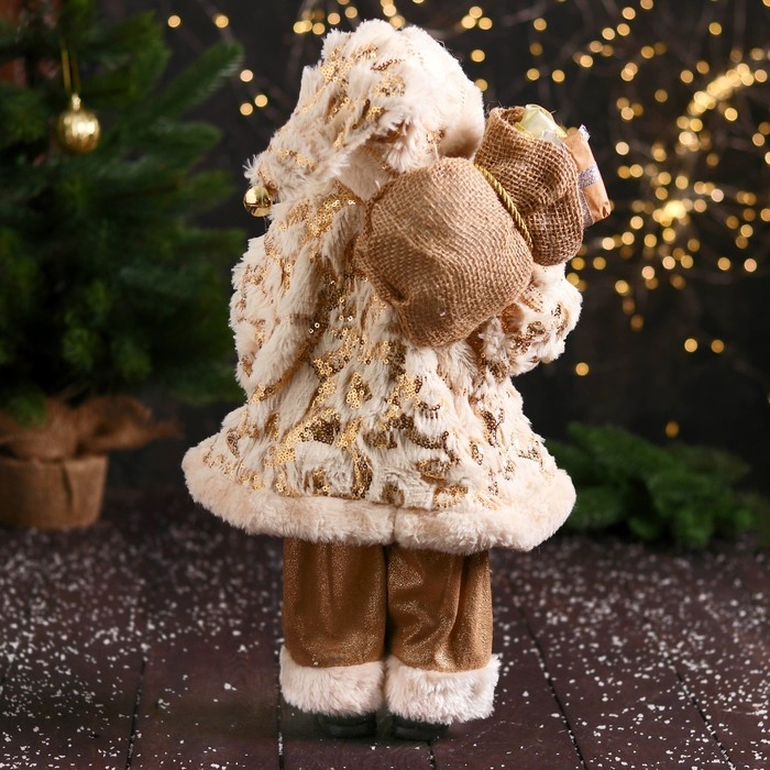 Дед Мороз "В пушистой шубе, колпачке, с подарком" 47 см, бело-золотой