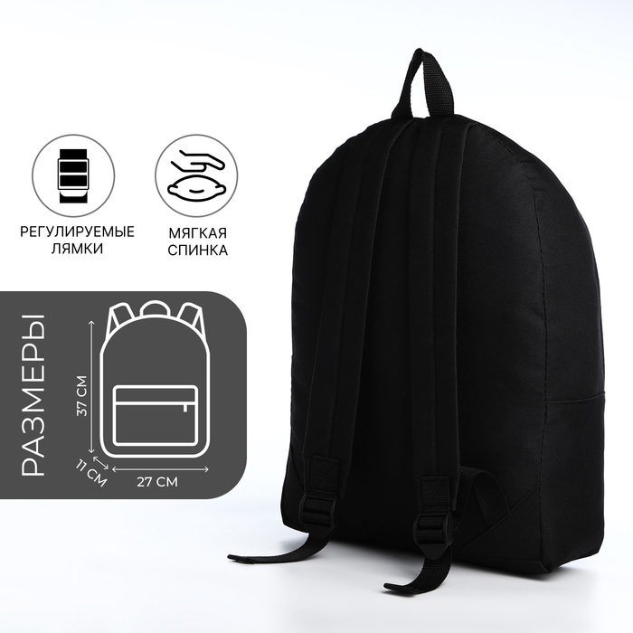 Рюкзак школьный на молнии молодёжный, наружный карман, цвет чёрный