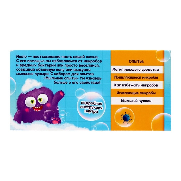 В ходе экспериментов ребёнок узнает, что такое микробы и как с ними справиться, почему руки нужно мыть с мылом и откуда появляется пена!