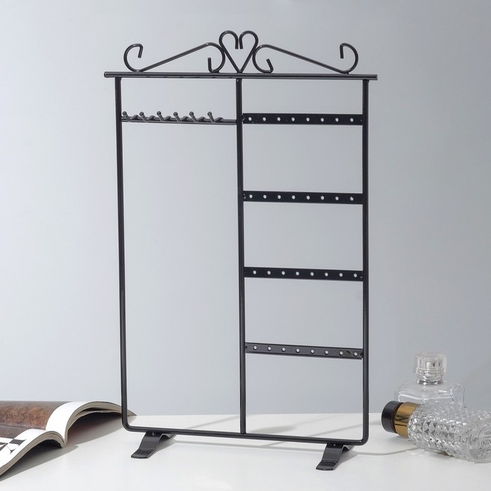 Подставка для украшений, 4 ряда, 16×7×29 см, цвет чёрный