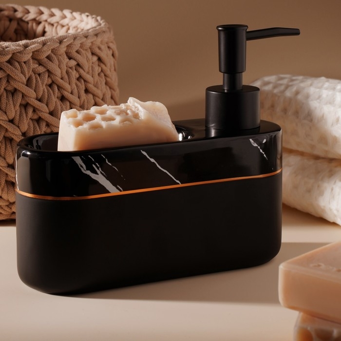 Дозатор для мыла SL Home Lines, с подставкой для губки, 400 мл, цвет чёрный