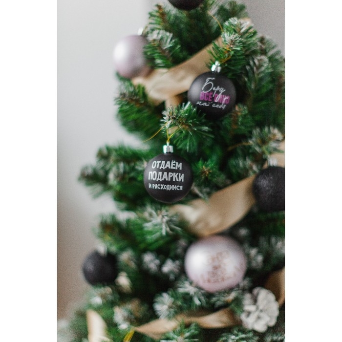 Шары ёлочные новогодние «Отдаём подарки и расходимся», на Новый год, пластик, d=6, 6 шт., цвет чёрный