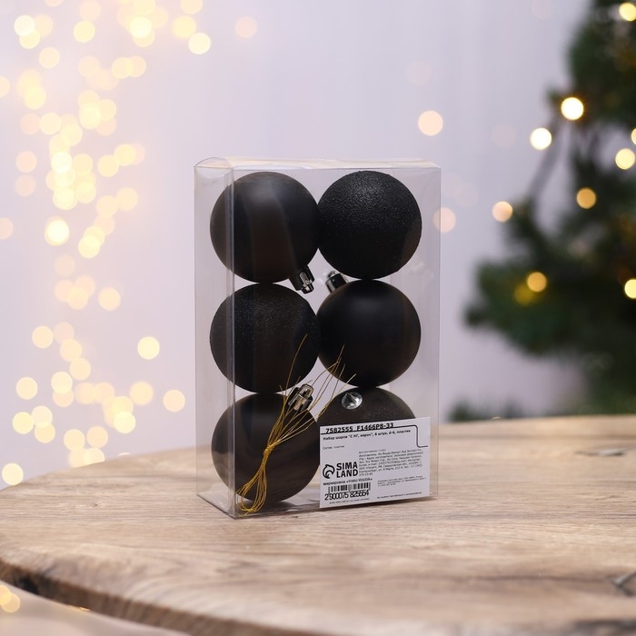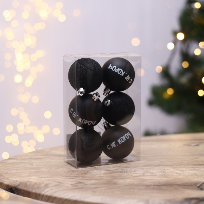 Шары ёлочные новогодние «С НГ, короч», на Новый год, пластик, d=6, 6 шт., цвет чёрный