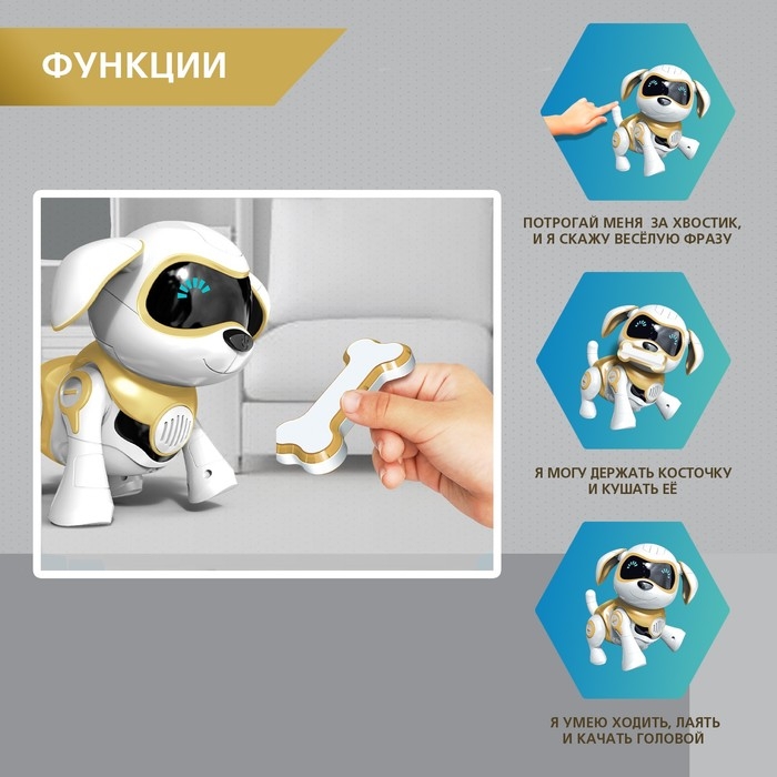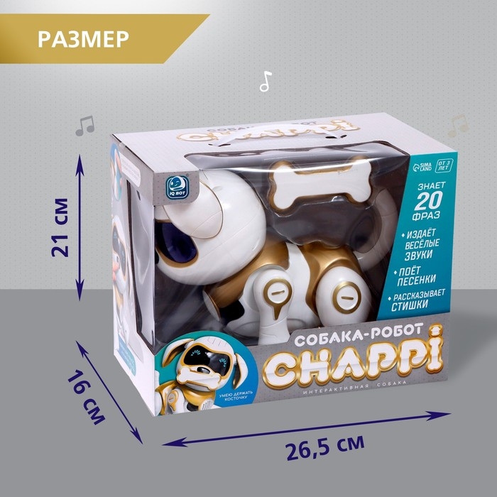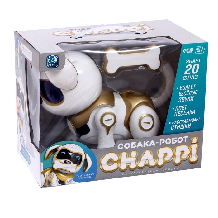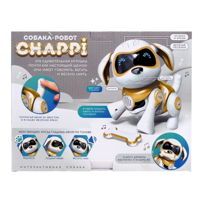Робот собака «Чаппи» IQ BOT, интерактивный: сенсорный, свет, звук, музыкальный, танцующий, на аккумуляторе, на русском языке, золотой