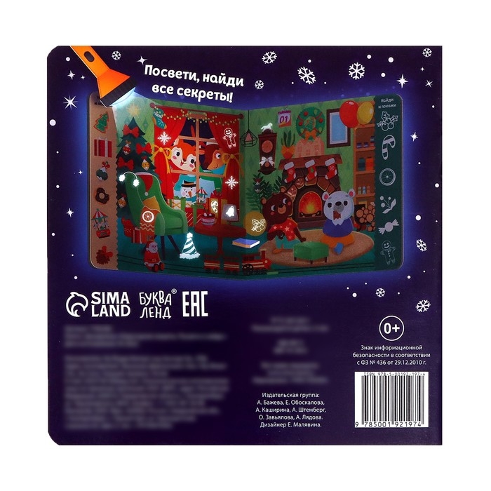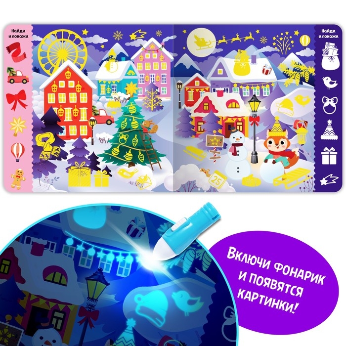 Книга с фонариком «Новогодние секреты. Посвети и найди», 24 стр.