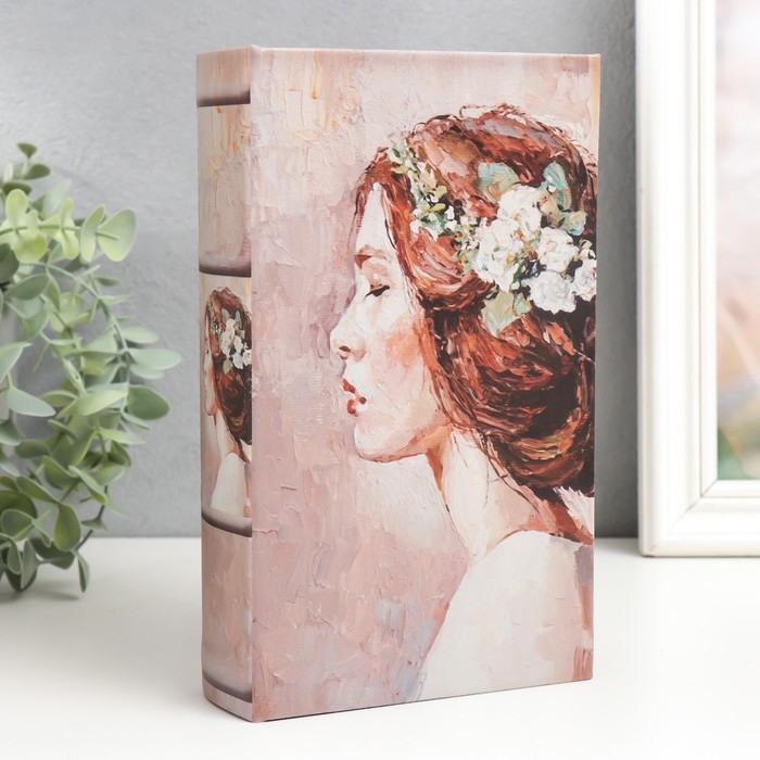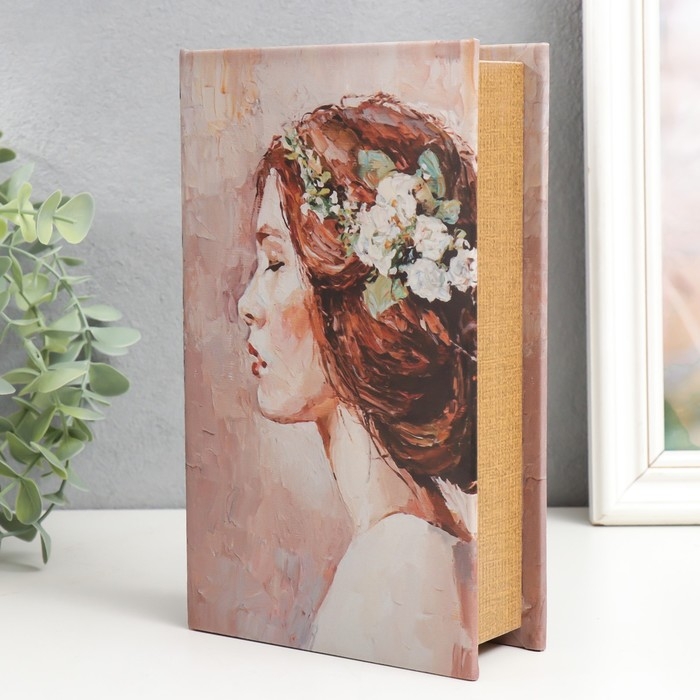 Сейф-книга дерево кожзам "Профиль девушки с цветами в волосах" 21х13х5 см