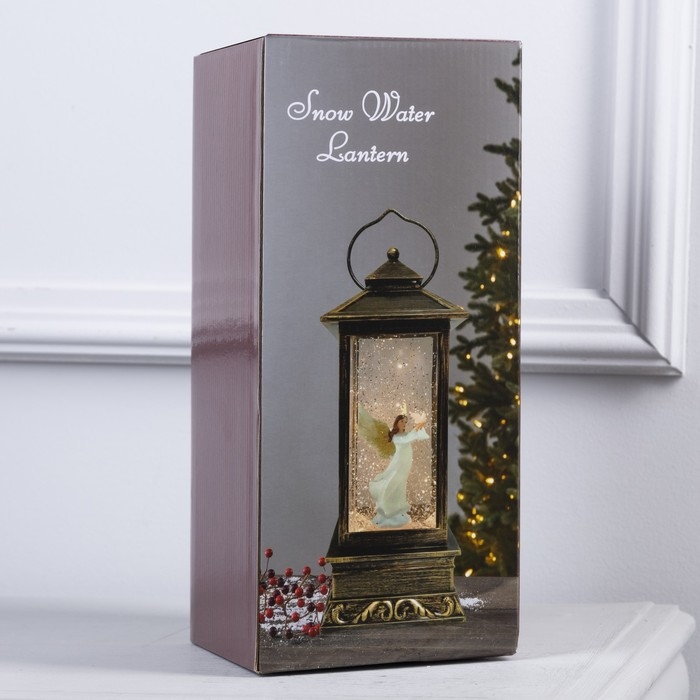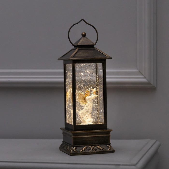 Светодиодная фигура «Фонарь с ангелом» 10 × 27 × 10 см, пластик, батарейки ААх3 (не в комплекте), USB, свечение тёплое белое