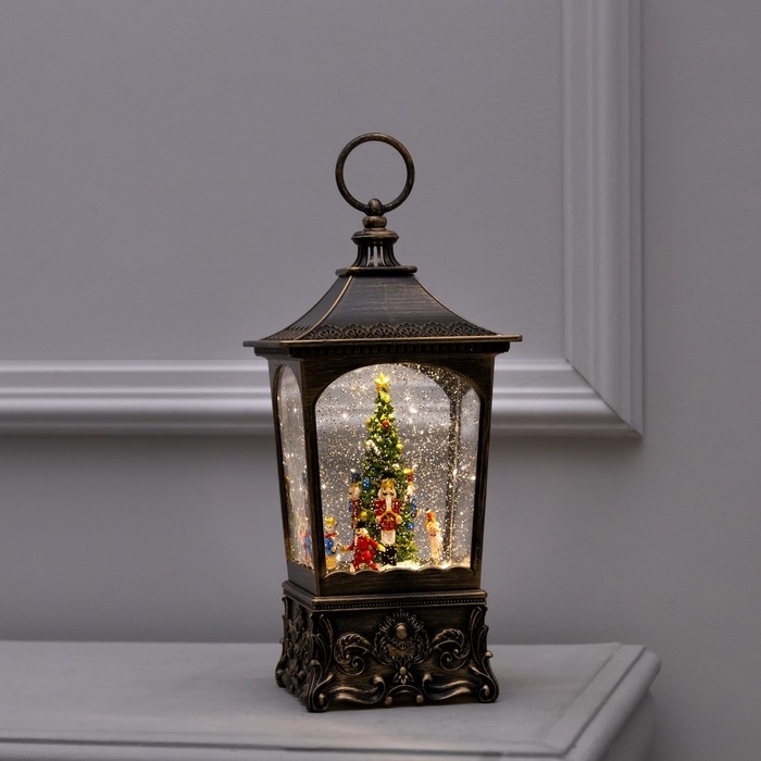 Светодиодная фигура «Фонарь с щелкунчиком» 13.5 × 28.5 × 13.5 см, пластик, батарейки ААх3 (не в комплекте), USB, свечение тёплое белое