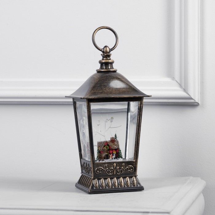 Светодиодная фигура «Фонарь с домиком» 12 × 24 × 12 см, пластик, батарейки ААх3 (не в комплекте), USB, свечение тёплое белое
