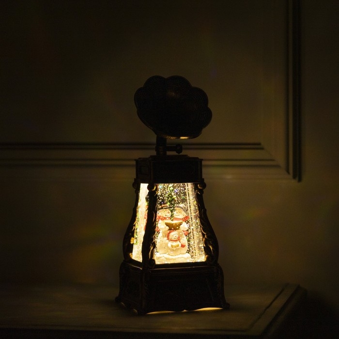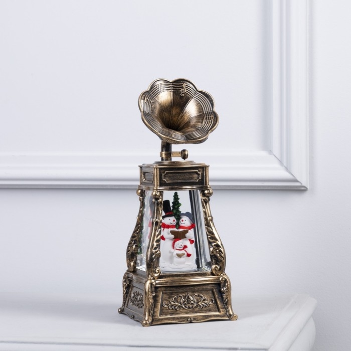 Светодиодная фигура «Граммофон со снеговиками» 11 × 28 × 11 см, пластик, батарейки ААх3 (не в комплекте), USB, свечение тёплое белое
