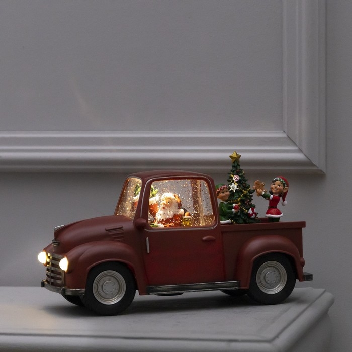 Светодиодная фигура «Машина с эльфами» 28 × 17 × 12 см, пластик, батарейки ААх3 (не в комплекте), USB, свечение тёплое белое