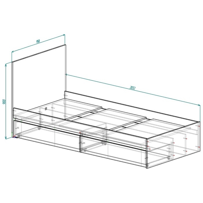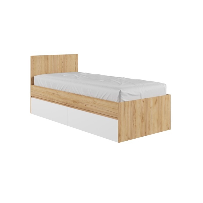 Кровать 900 с ящиками и основанием Мадера, с/м 900х2000, Дуб крафт золотой/Белый