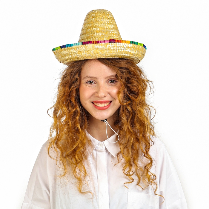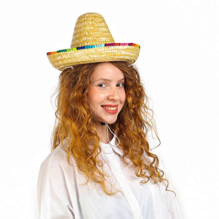 Аррива! Добро пожаловать в мир текилы, маракасов и кактусов! Карнавальная шляпа «Сомбреро» погрузит вас в мексиканскую атмосферу улыбчивых людей и острых соусов! Почему бы не устроить костюмированную вечеринку в латиноамериканском стиле? Или конкурс шляп? Такой головной убор отлично подойдёт и для тематического представления или спектакля! Эта эффектная деталь национального костюма передаст весь колорит жаркой страны. С такой шляпой вы почувствуете себя настоящим мачо! Можно фантазировать как угодно.