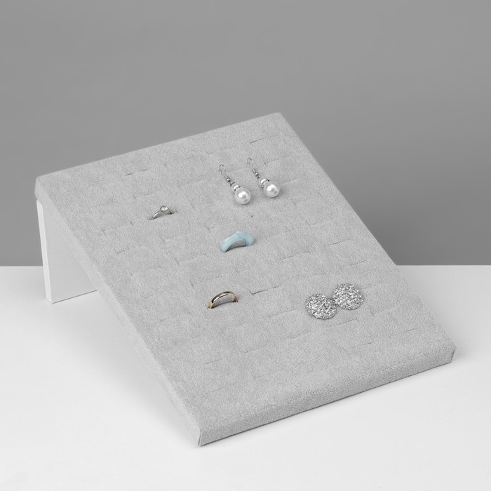 Подставка под кольца 50 мест, флок, цвет серый 20×9,7×24 см