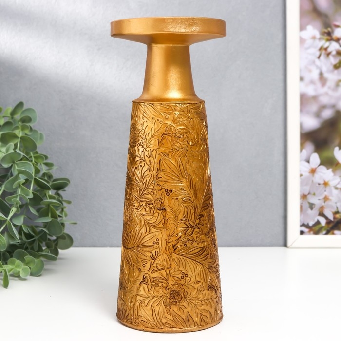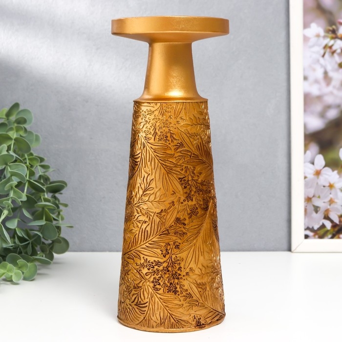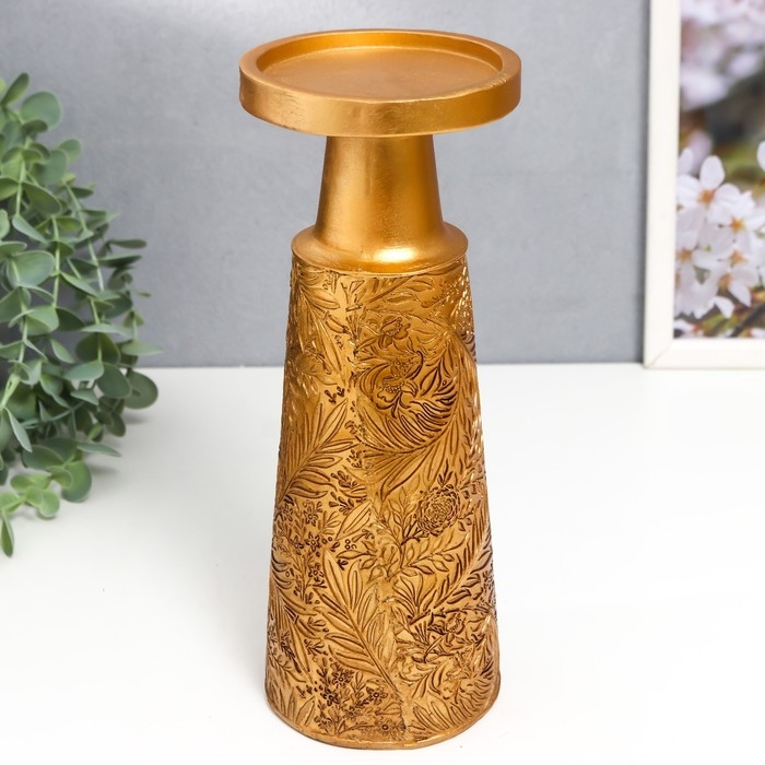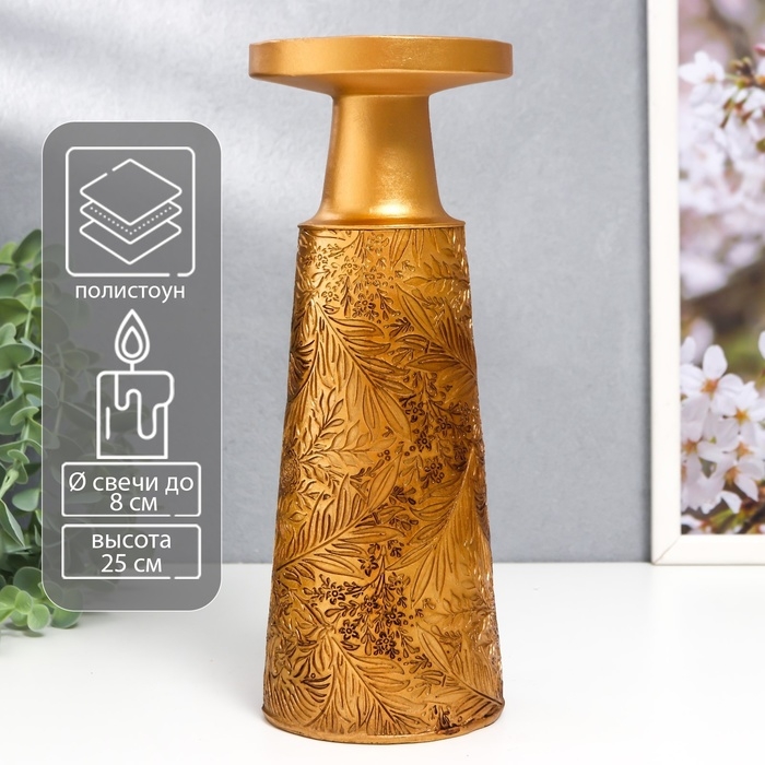 Подсвечник полистоун на 1 свечу "Растительные узоры" золото 25х9,5х9,5 см