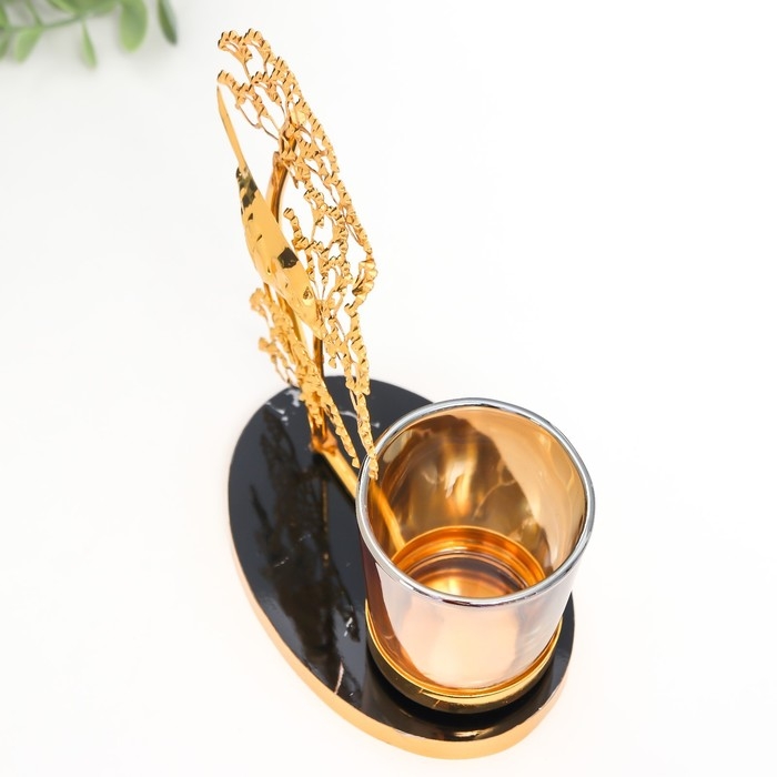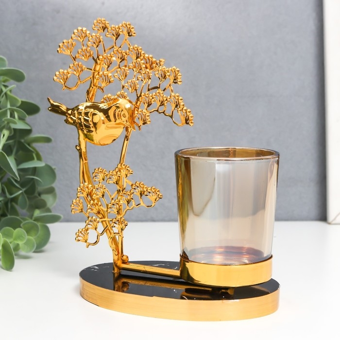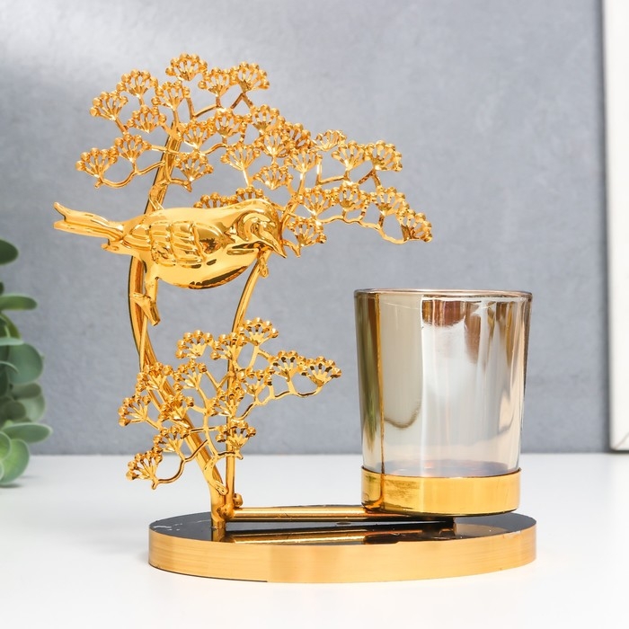 Подсвечник металл, стекло на 1 свечу "Птица на деревце" d-5 см, золото 8х15х17,5 см
