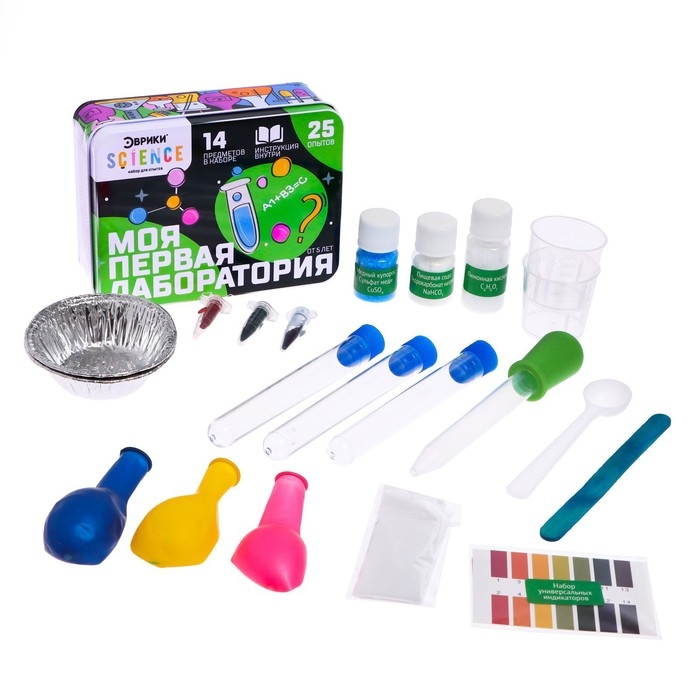 С набором для опытов «Моя первая лаборатория» ребёнок познакомиться со свойствами различных химических элементов проведёт 15 увлекательных опытов!