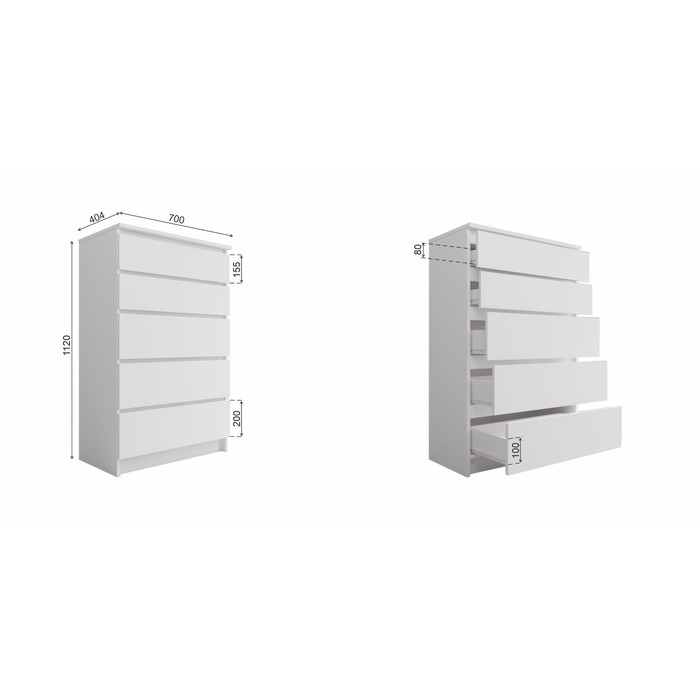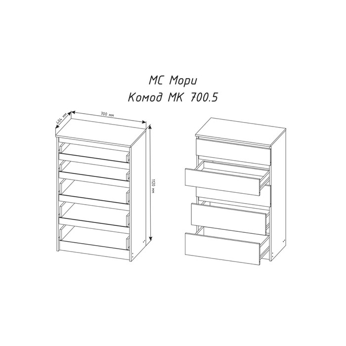 Комод «Мори» - подойдет под любое решение, для создания современного и уютного уголка в вашей комнате. Его модель компактная, но в то же время очень функциональная и вместительная, так как он оснащен пяти выдвижными ящиками, для оптимального использования хранения одежды и личных вещей.