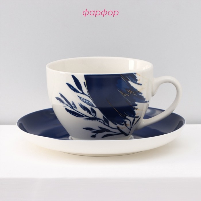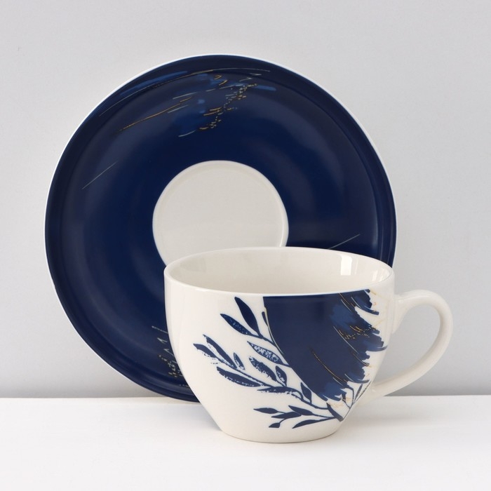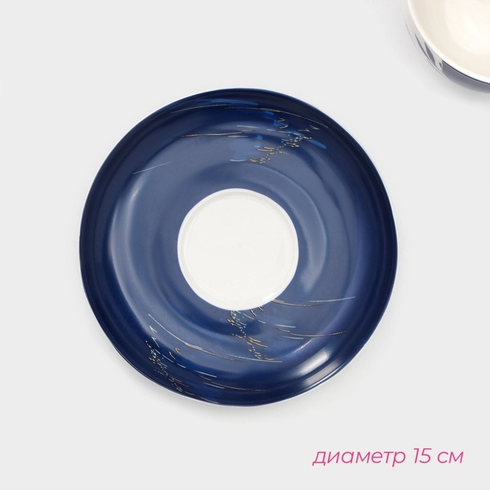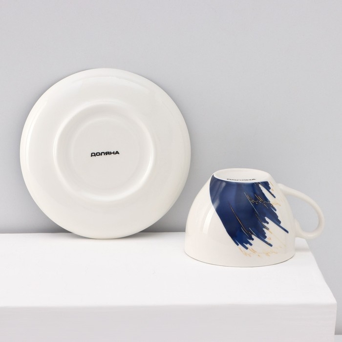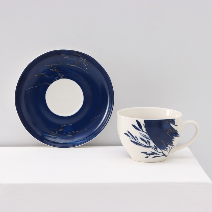 Набор чайный керамический Доляна «Русский узор», 4 предмета: 2 чашки 210 мл, 2 блюдца d=14,1 см, цвет синий