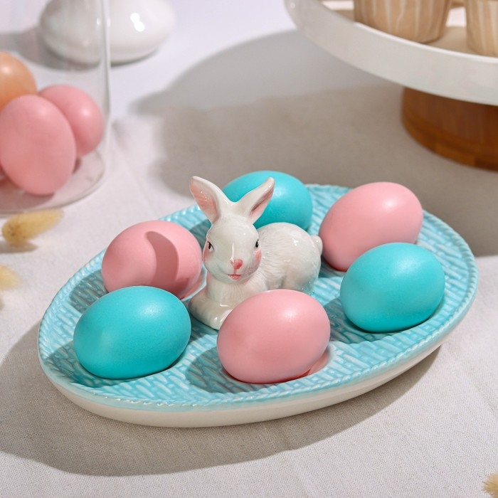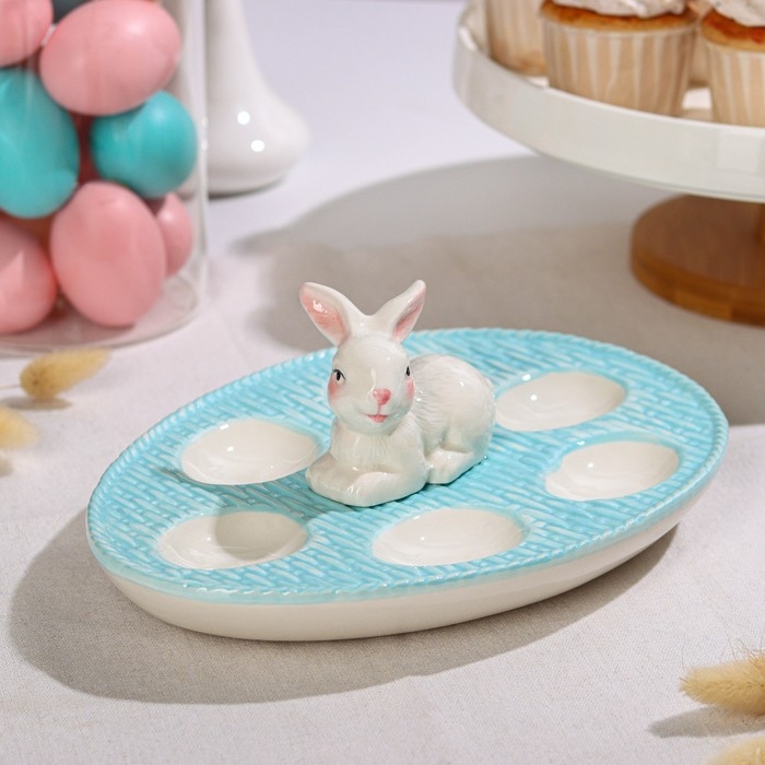Подставка для яиц станет оригинальным решением для сервировки во время пасхальных торжеств и других пышных праздников. Посуда изготовлена из доломита и украшена забавным кроликом! Оригинальный дизайн изделия делает его гармоничным дополнением к любому варианту оформления стола.