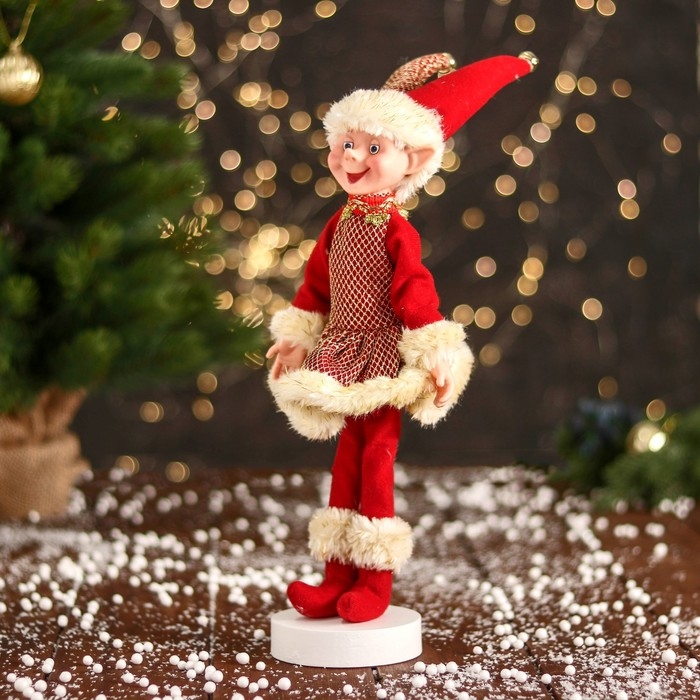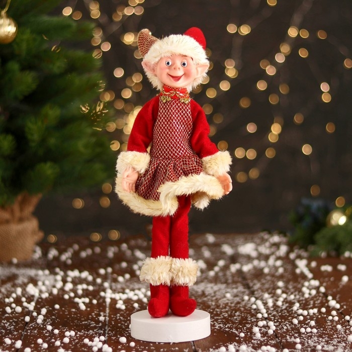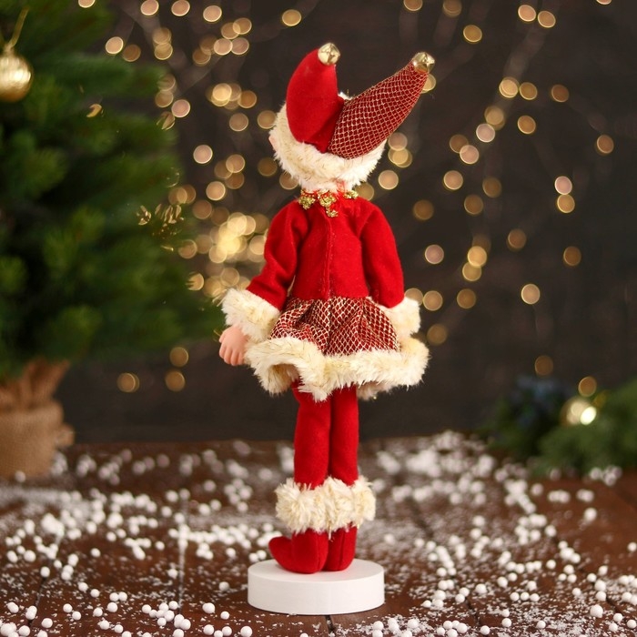 Новогодний шут "В платье в сеточку и мехом" 30 см, жёлто-красный