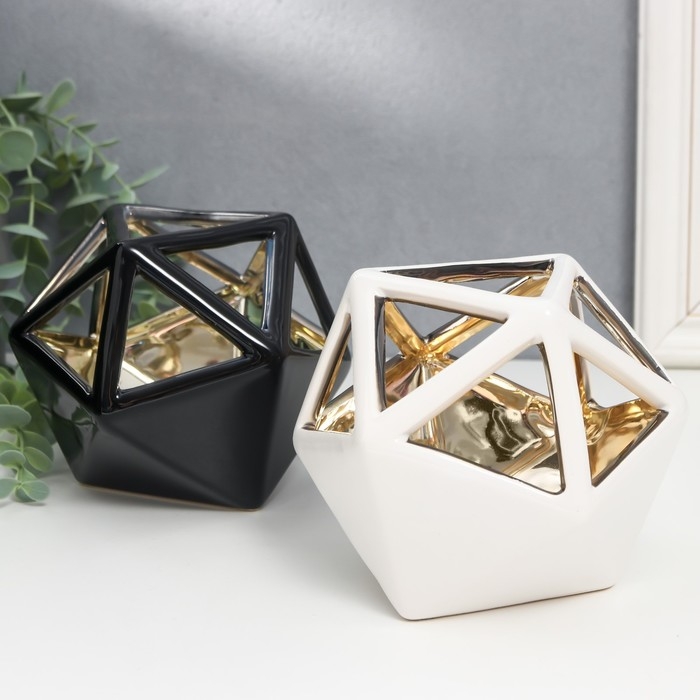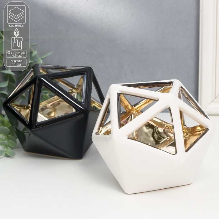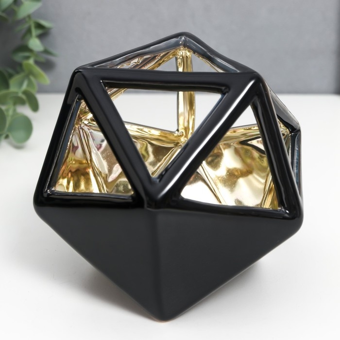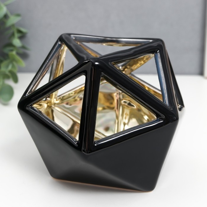 Подсвечник керамика на 1 свечу "Многогранник" внутри золото МИКС 11х14х12,5 см