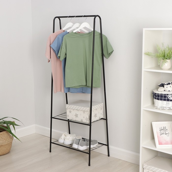 Вешалка - стойка напольная для одежды Доляна «Лофт», с двумя полками, 59×35×152 см, цвет чёрный