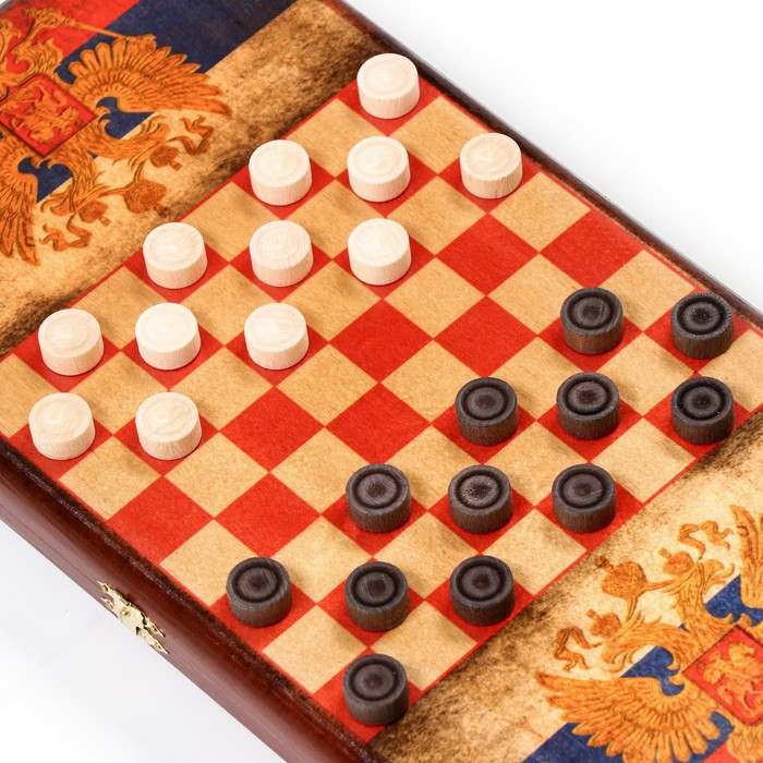 Нарды деревянные большие, настольная игра "Герб России", 40 х 40 см, с шашками