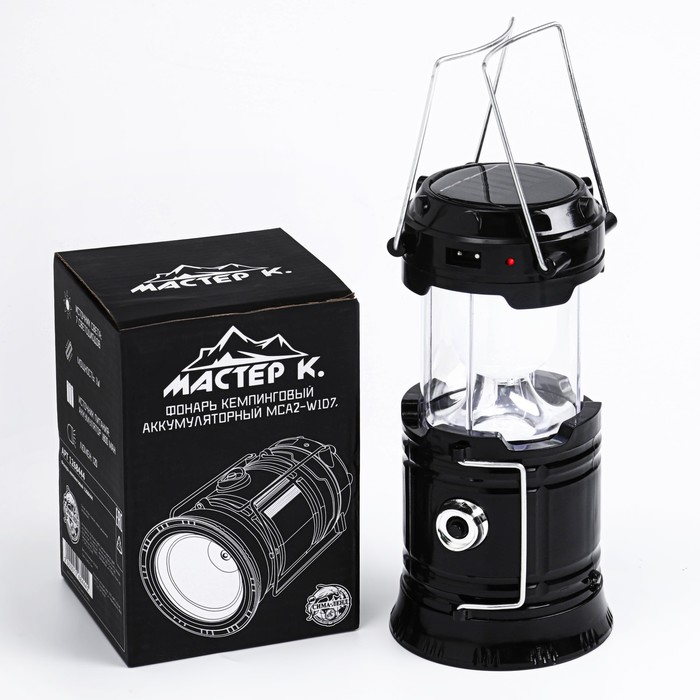 Фонарь кемпинговый аккумуляторный "Мастер К.", 1800 мАч, 7 LED, солнечная батарея, черный