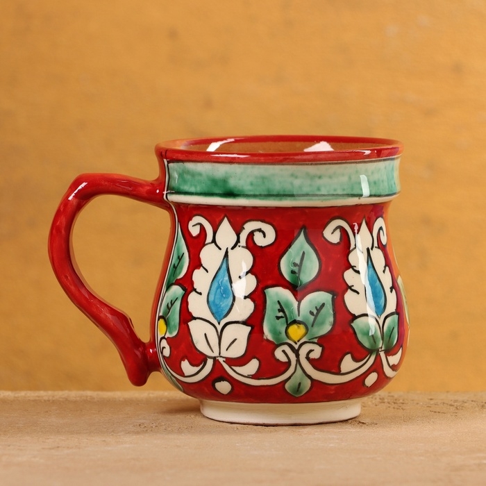 Кружка Риштанская Керамика "Цветы", 330 мл, красный