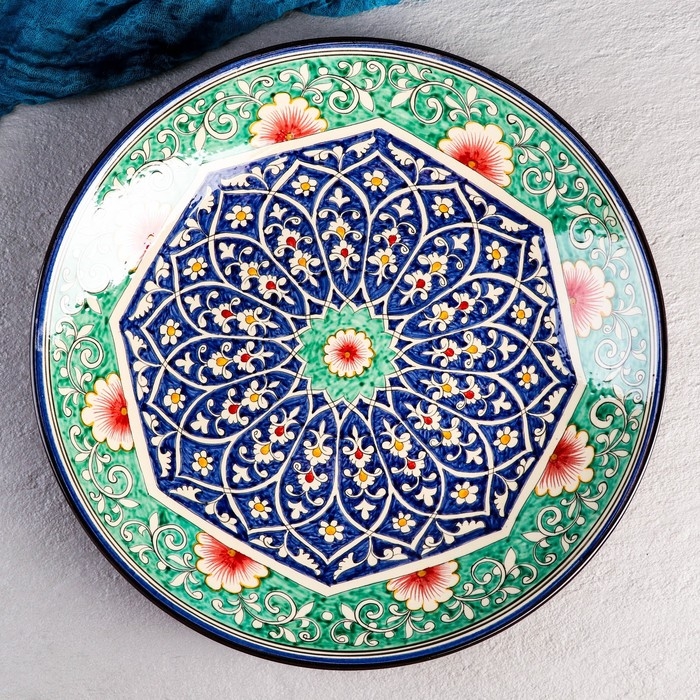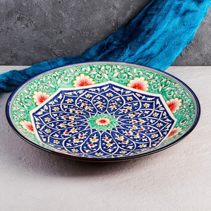 Ляган Риштанская Керамика, 41см, сине-зеленый,