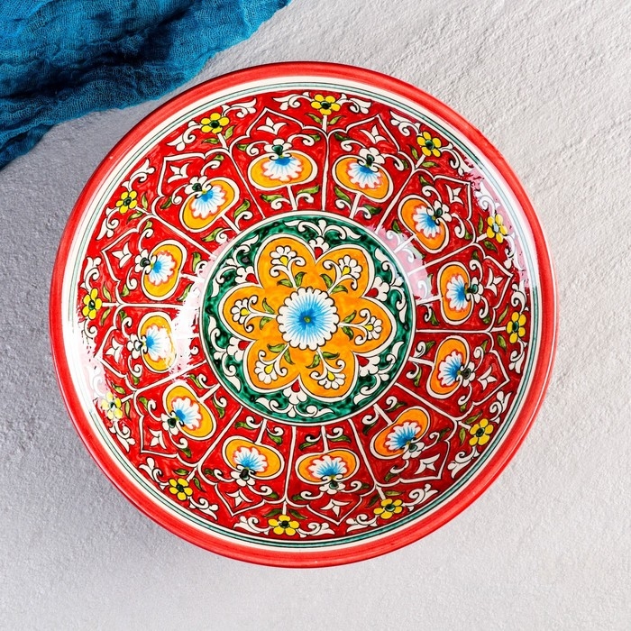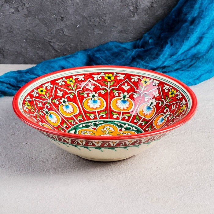 Супница Риштанская Керамика "Узоры", 28 см, красная