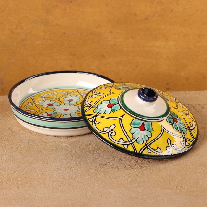 Масленка Риштанская Керамика "Узоры", 17 см, желтая