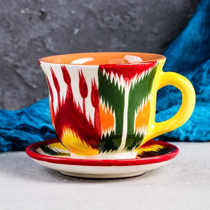Чайная пара Риштанская Керамика "Атлас", 220 мл, разноцветная