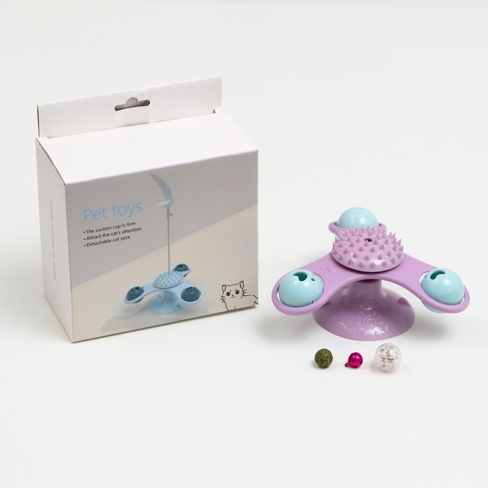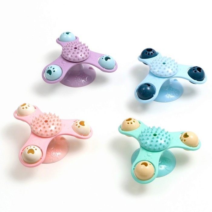 Игрушка-вертушка на присоске для кошек, 3 отсека с бубенчиками, микс цветов