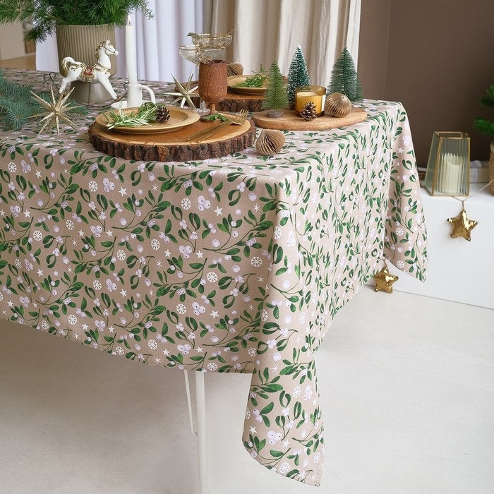 Скатерть Доляна Frosty berries 149х220+/- 3см, 100% хлопок, рогожка 164 г/м2