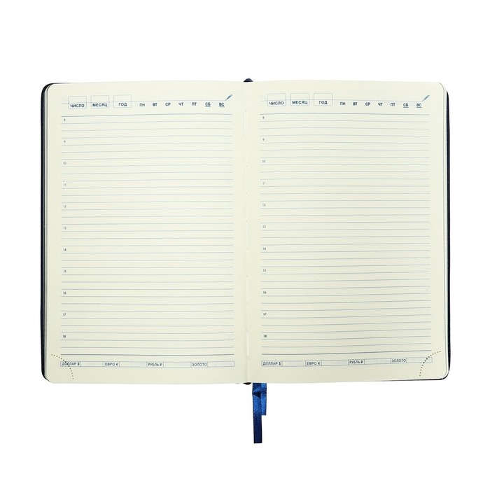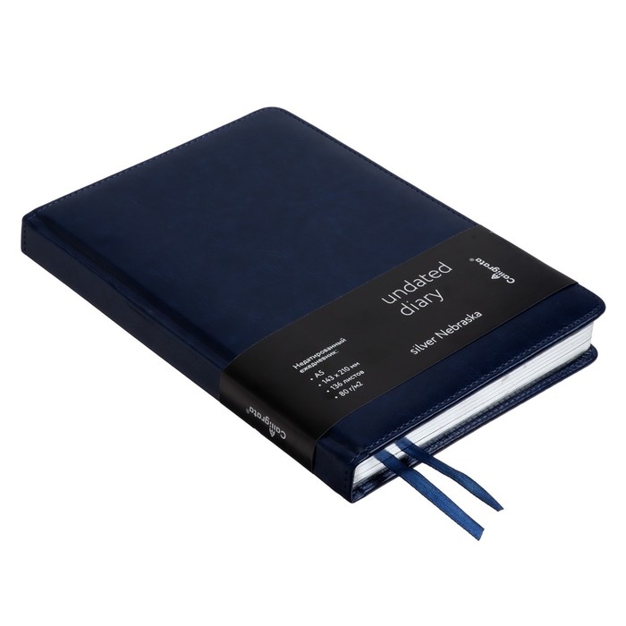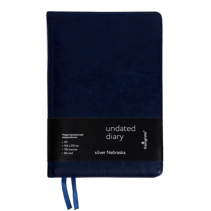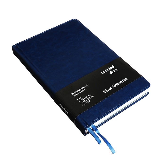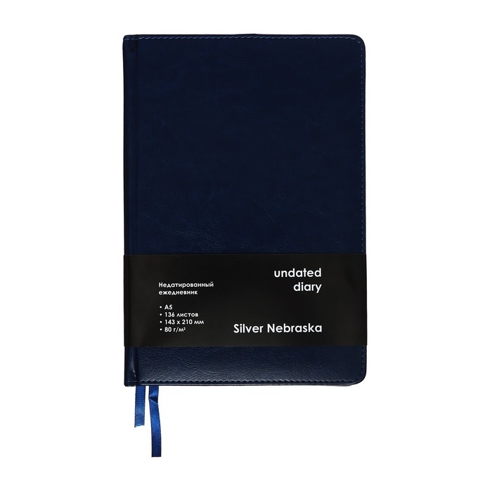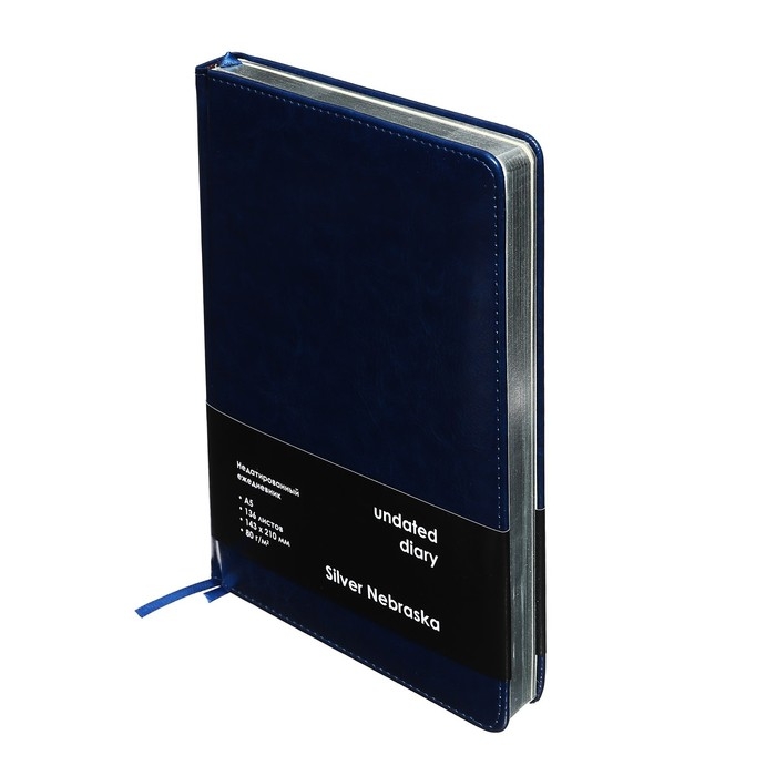 Ежедневник НЕдатированный А5, 136 листов в линейку, кожзам "Небраска", серебряный срез, синий
