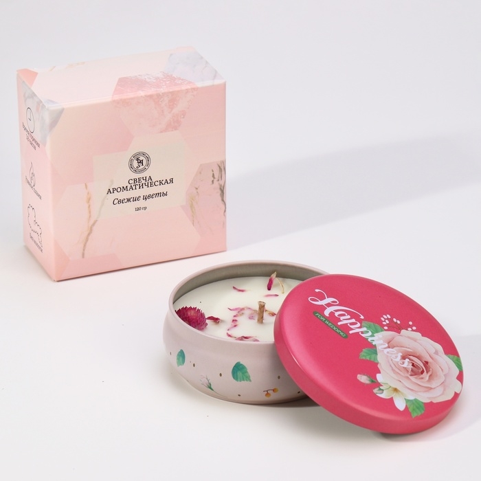 Свеча ароматическая из соевого воска с сухоцветом "Свежие цветы", 3х8,5 см, 110 г