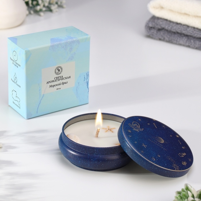 Свеча ароматическая из соевого воска с сухоцветом "Морской бриз", 3х8,5 см, 110 г
