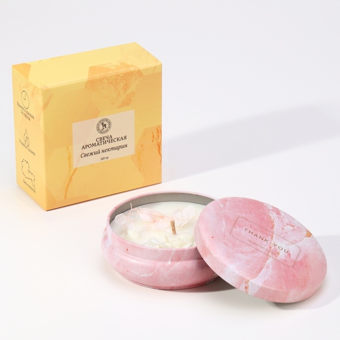 Свеча ароматическая из соевого воска с сухоцветом "Свежий нектарин", 3х8,5 см, 110 г