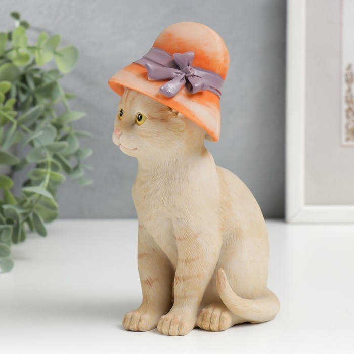 Сувенир полистоун "Кошечка в дамской шляпке" 16,5х7,5х10 см
