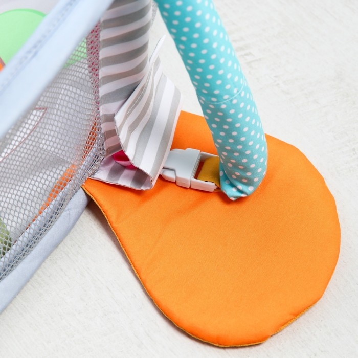Развивающая игрушка выполнена в виде браслетика на липучке. В комплект входят две штуки. Их можно надеть малышу на ручки или ножки. Звуковые элементы будут греметь, когда непоседа сменит положение тела.