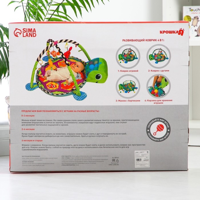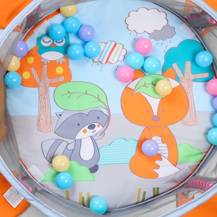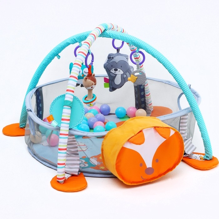 Развивающий коврик 3 в 1 «Лиса», 68х68 см, 30 цветных шариков, 5 игрушек, Крошка Я