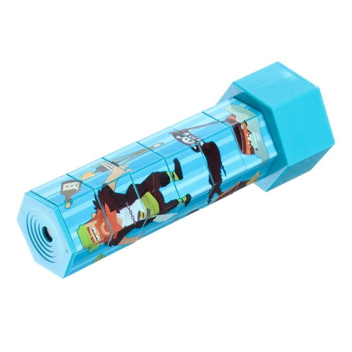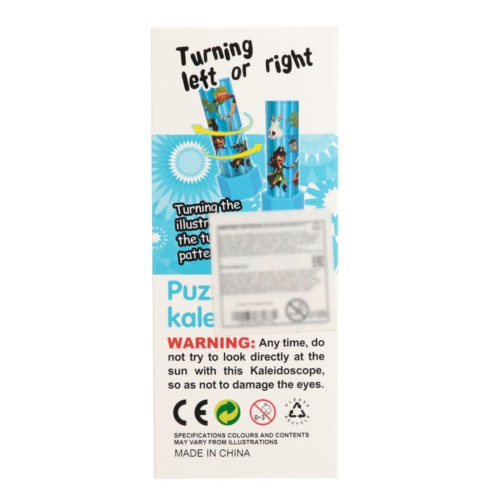 Детский калейдоскоп имеет яркий привлекательный дизайн с забавными героями. С помощью калейдоскопа ребёнок сможет развить цветовосприятие, воображение и внимание.