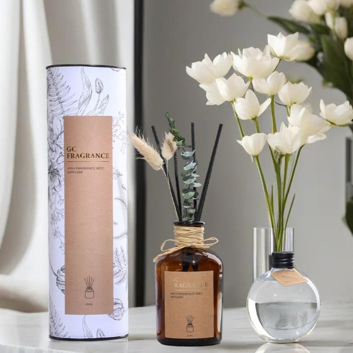 Набор для ароматизации помещений в тубусе: диффузор 230 мл, аромамасло, красное дерево