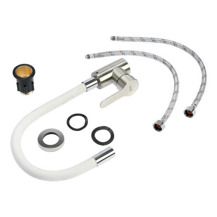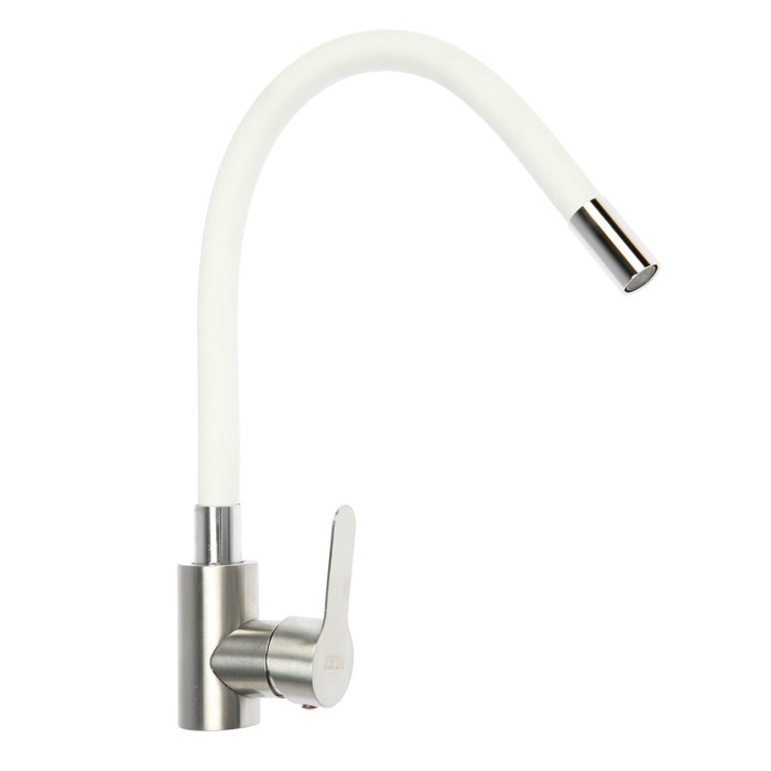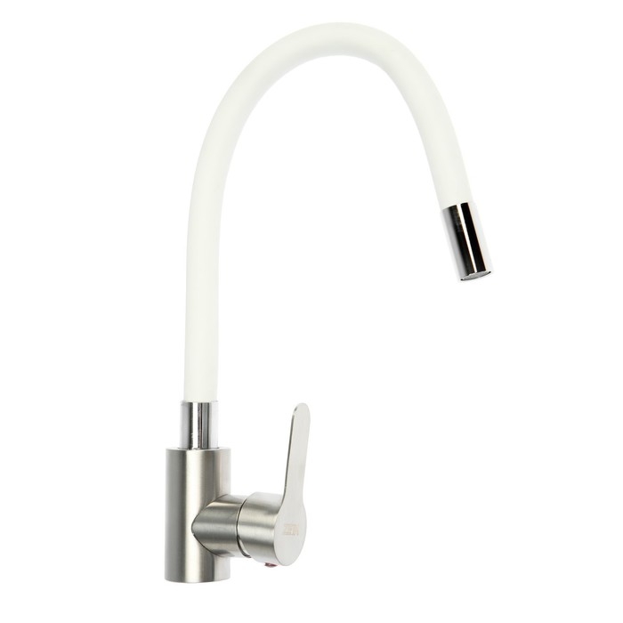 Смеситель для кухни ZEIN Z2752, гибкий излив, картридж 35 мм, нерж. сталь, белый/сатин
