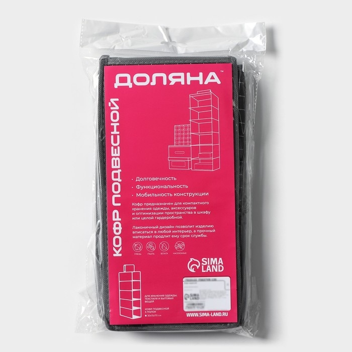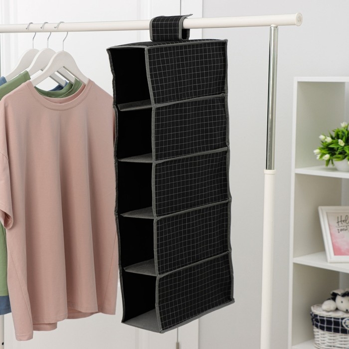Органайзер подвесной Доляна «Кло», 5 отделений, 30×15×70 см, цвет чёрный