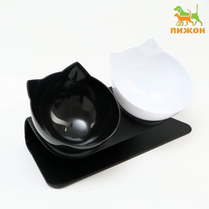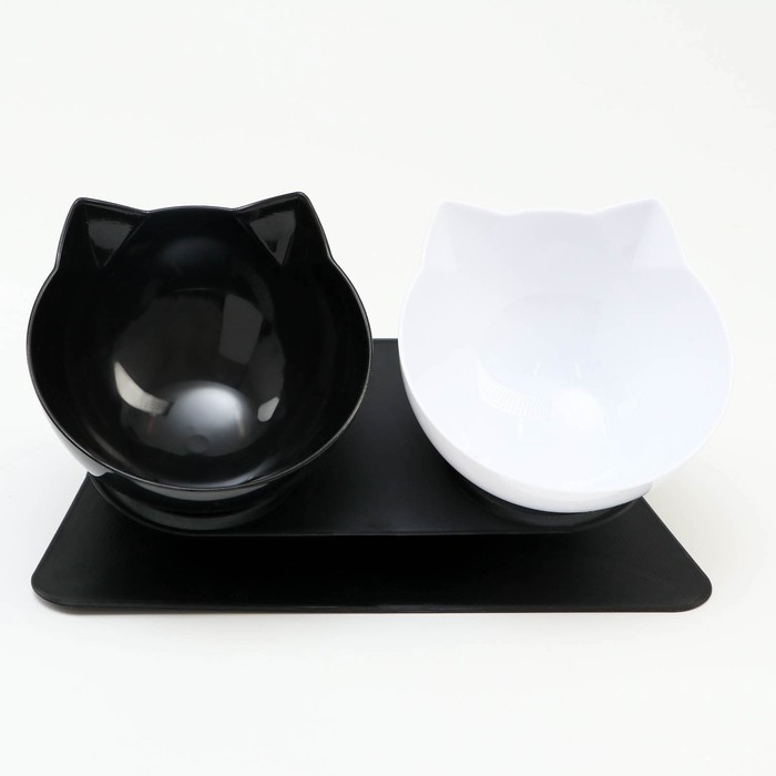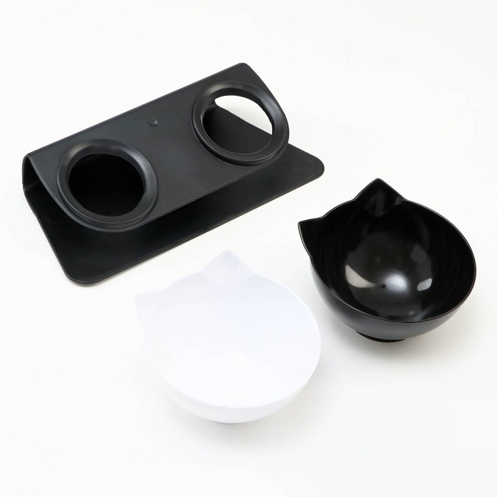 Миски пластиковые на чёрной подставке 27,5 х 14 х 15 см чёрная/белая