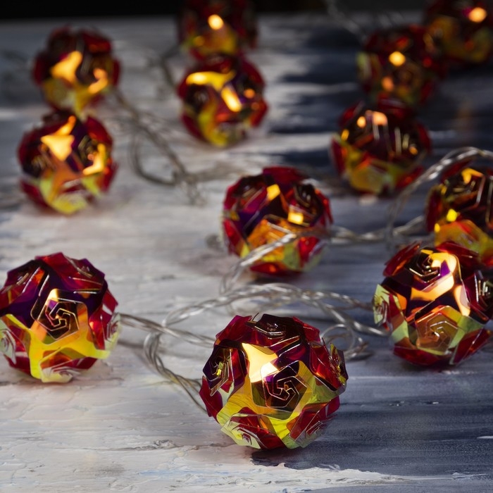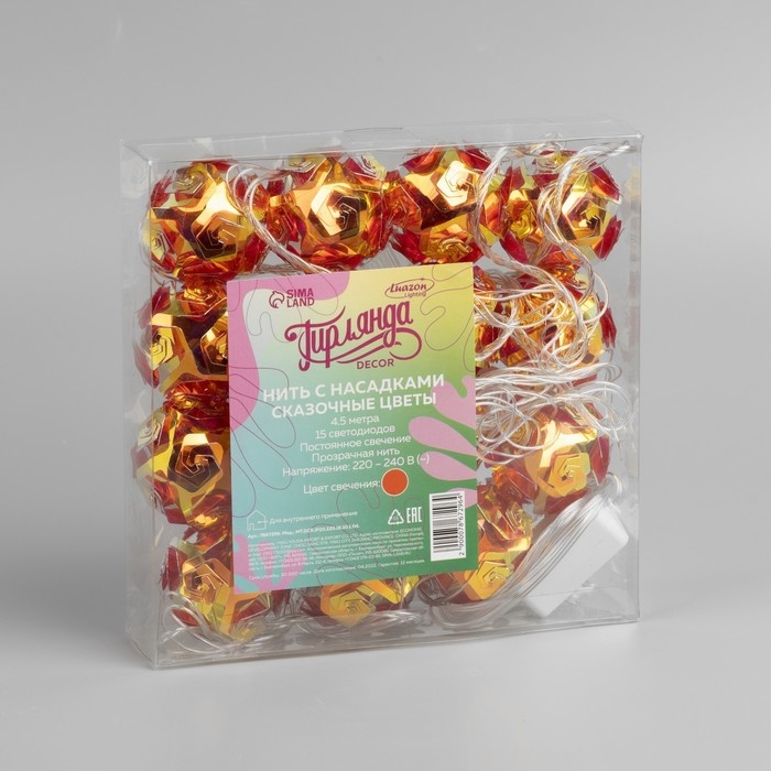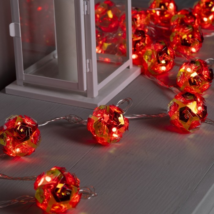 Гирлянда «Нить» 4.5 м с насадками «Цветочные шары», IP20, прозрачная нить, 15 LED, свечение красное, 220 В