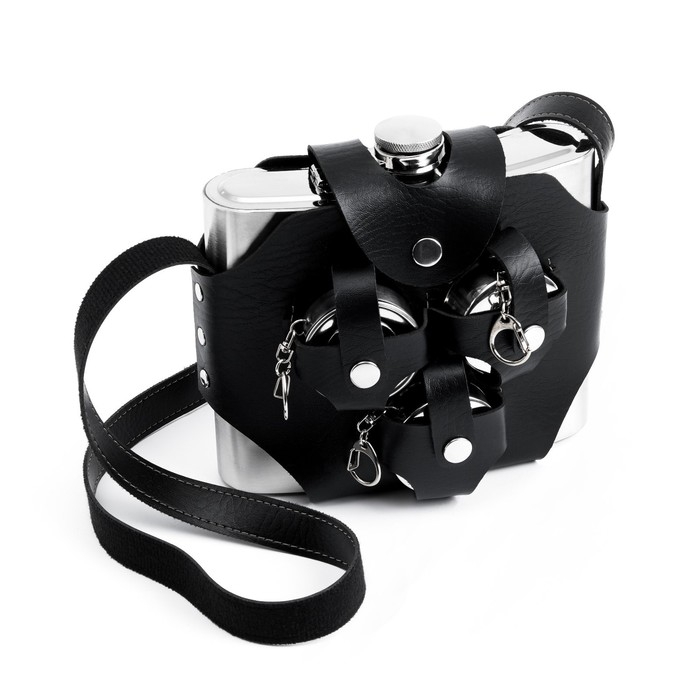 В наборе есть фляжка из нержавеющей стали, 3 складных стакана, а также чехол с ремнем для перемещения, что очень удобно и практично! Мужчины точно оценят!
